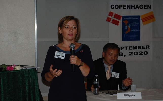 Elise Bangert, politisk og juridisk rådgiver fra Amnesty International i Danmark fremhævede evidenser og bevis for alvorlige menneskerettighedskrænkelser i Vietnam. Religiøs forfølgelse, frihedsberøvelse og arrestationer uden retssag, hårde fængselsdomme til aktivister, dissidenter, bloggere, facebookere, freelance journalister osv. Også nævnte hun om hårde tortur og død i fængsel, indførelse af loven om cybersikkerhed i 2019 til at kontrollere ytringsfriheden på de sociale medier.