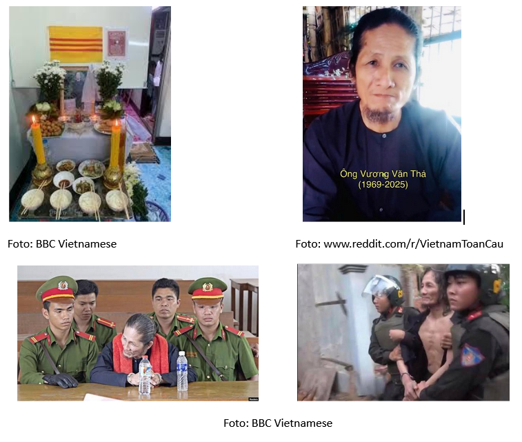 Den vietnamesiske Hòa Hảo buddhist Vương Văn Thả døde angiveligt den 2. september 2025 i An Phước fængslet i Bình Dương-provinsen, hvor myndighederne hævdede, at han begik selvmord, men hans familie og menneskerettighedsforkæmpere betvivler denne forklaring på grund af hans stærke religiøse overbevisninger og mistænkelige omstændigheder. Thả, der var en trofast tilhænger af Hòa Hảo buddhismen og kendt som samvittighedsfange, sad fængslet for “propaganda mod staten” og havde siden 2017 afsonet en 12-årig dom, mens myndighederne forsøgte at skjule hans død indtil efter Vietnams nationaldag. Hans død har genoplivet international kritik af Vietnams håndtering af politiske fanger og den fortsatte undertrykkelse af aktivister, religiøse tilhængere og miljøforkæmpere under mistænkelige forhold i fængslerne.